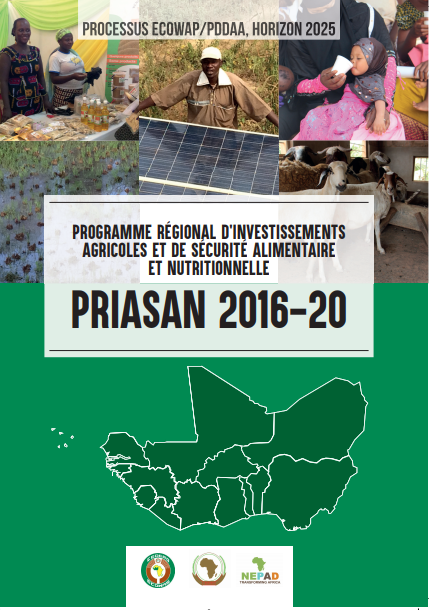 The 2016-2020 Regional Agriculture Investment Plan and Food Security and Nutrition (RAIP-FNS) declines for the period 2016-2020 the Strategic Policy Framework (SPF) of the ECOWAP/CAADP. It is based on the 2005-2015 assessment carried out by ECOWAP/CAADP stakeholders and on the priorities (challenges and thematic issues) proposed by the “ECOWAP +10 Conference and Prospects for 2025” and approved by the Specialized Ministerial Technical Committee on Agriculture, Environment and Water Resources (SMTC-AEWR), as well as the Results Framework contained in the SPF.